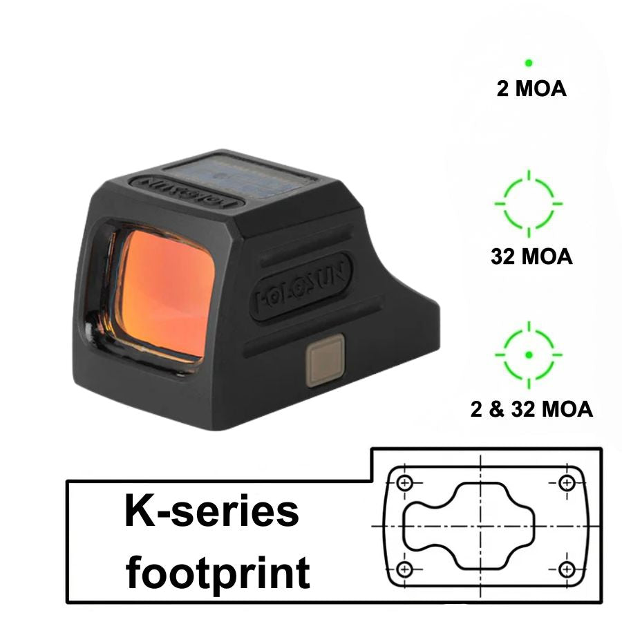 Denna rödpunktsikte använder Holosun K-Series footprint-standard.