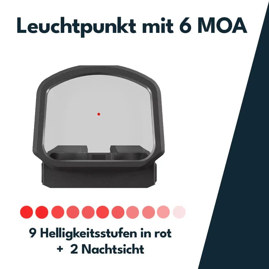 Den större, prestandabelagda asfäriska linsen ger ett klart synfält för snabbare målfångst från draget och vid förflyttning mellan mål. Huset i flygplansaluminium har förstärkts och en integrerad adapterplatta har lagts till, liksom en ny batterilåda i aluminium för ökad tillförlitlighet vid montage på mantel.